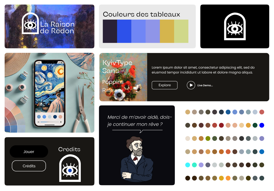 - Conception narrative et direction artistique : élaboration du scénario interactif et définition de l’univers visuel inspiré de l’œuvre d’Odilon Redon.
