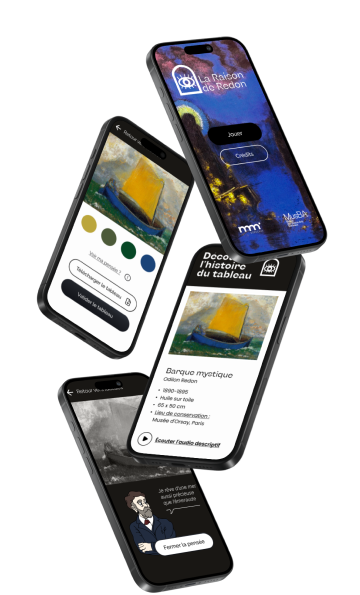 À travers une application mobile, les visiteurs plongent dans le monde onirique d’Odilon Redon, où les couleurs de ses œuvres se sont évanouies. Leur mission : restaurer ces couleurs, explorer les œuvres, et découvrir petit à petit l’histoire de l’artiste — de ses cauchemars à ses rêves.