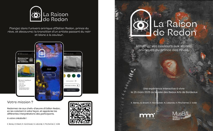 Dans le cadre de la 10ème édition de la Bacchanight, soirée culturelle et festive organisée au MUSBA (Musée des Beaux-Arts de Bordeaux) le 25 Mars 2025, nous avons conçu une application mobile autour de l’univers d’Odilon Redon, artiste bordelais et figure majeure du symbolisme. L’objectif était de proposer une expérience immersive mêlant art et rêve.